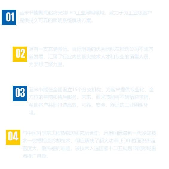 藍(lán)米節(jié)能聚焦超高光效LED工業(yè)照明領(lǐng)域,致力于為工業(yè)級(jí)客戶提供持續(xù)可靠的照明系統(tǒng)解決方案。 服務(wù)客戶遍布國(guó)內(nèi)重工業(yè)、機(jī)械制造、軍工、鐵路、鋼鐵、電力、冶金、食品、電子等行業(yè)。公司所有產(chǎn)品通過(guò)國(guó)家強(qiáng)制性3C認(rèn),為廣大客戶提供優(yōu)質(zhì)、穩(wěn)定、可靠的服務(wù)體驗(yàn)。